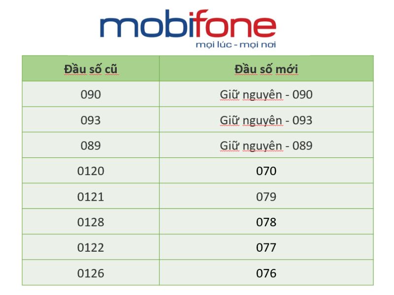 Những đầu số khác của Mobifone chuyển đổi thành gì?