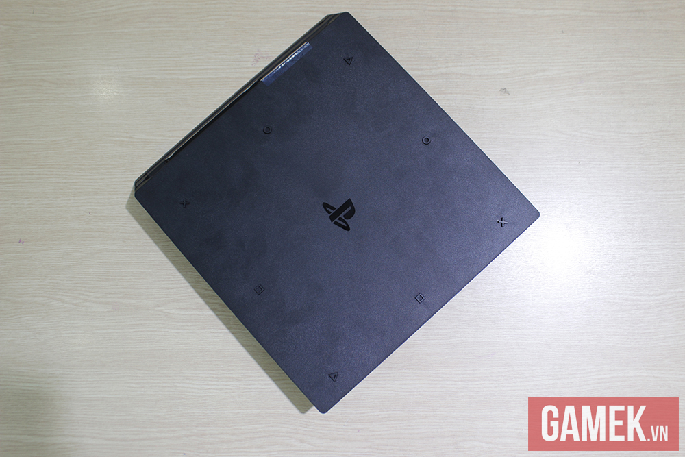 Kế đến là logo PS trên bề mặt chiếc máy chơi game. Thay vì in chìm bóng để phân biệt với bề mặt nhựa nhám, logo PS được mạ chrome, sáng loáng và tạo ra cảm giác của một thiết bị cao cấp: