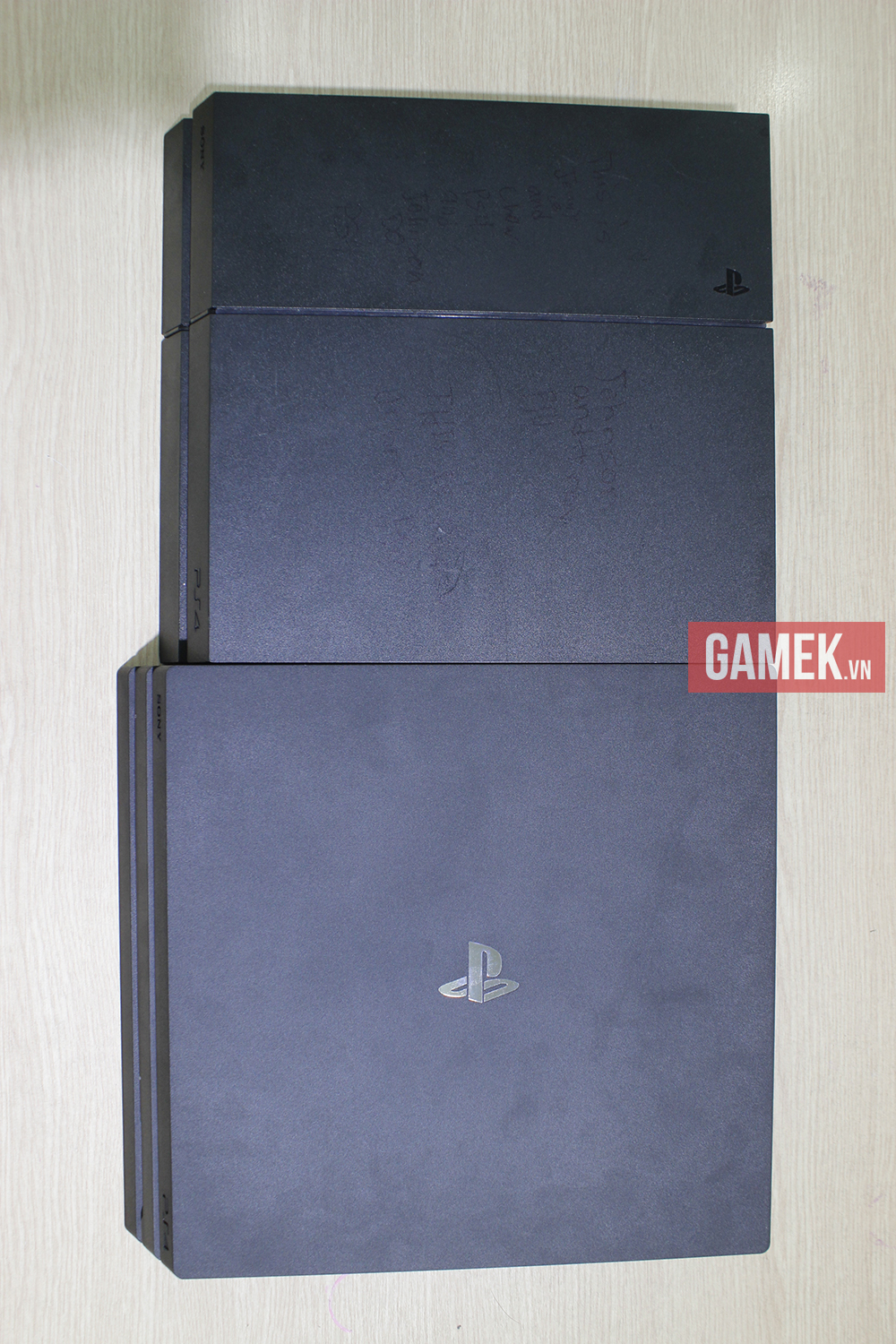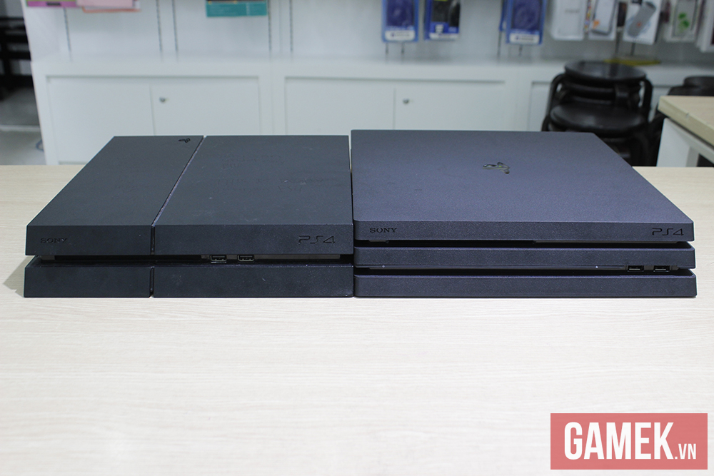 Một số thay đổi nhỏ đã được Sony đưa vào giúp game thủ nhận diện PS4 Pro với PS4 phiên bản 2015 cũng như PS4 Slim, phiên bản mỏng gọn hơn của cỗ máy chơi game ra mắt lần đầu tiên năm 2013. Đầu tiên là tay cầm chơi game. Nút cò và tông màu của tay cầm PS4 Pro xám sáng hơn so với PS4 cũ: