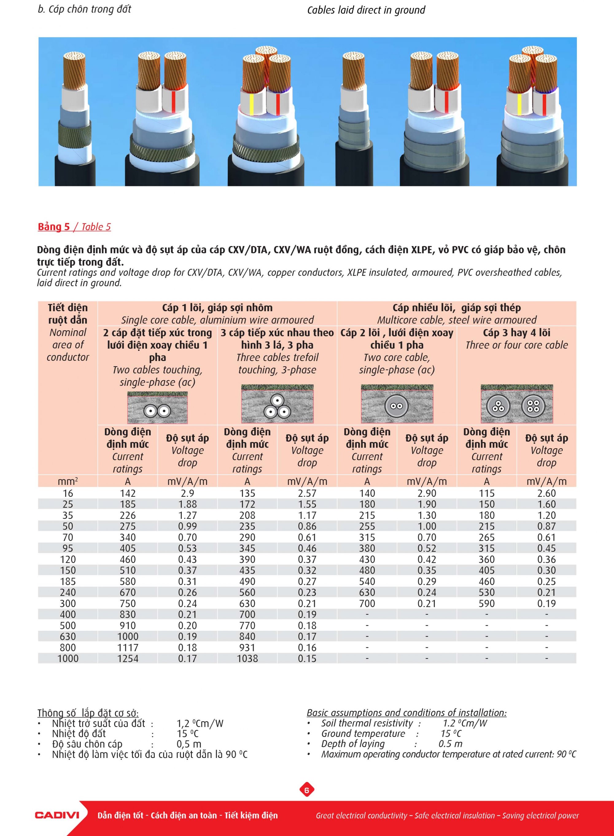 Đặc tính kỹ thuật dây điện Cadivi CXV:
