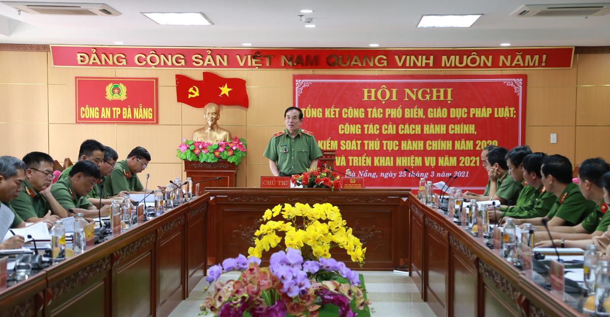 Ngày 25-3, Công an TP Đà Nẵng tổ chức hội nghị Tổng kết công tác cải cách hành chính, kiểm soát thủ tục hành chính, phổ biến giáo dục pháp luật năm 2020 và triển khai nhiệm vụ năm 2021. Thiếu tướng Vũ Xuân Viên - Ủy viên Ban Thường vụ Thành ủy, Giám đốc Công an TP chủ trì hội nghị.
