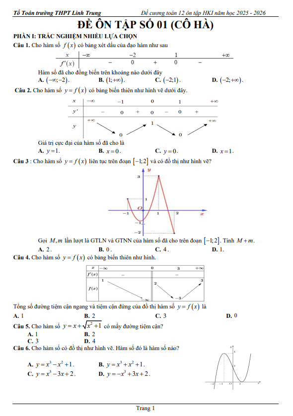 Đề cương ôn tập HK1 Toán 12 năm 2025 – 2026 trường THPT Linh Trung – TP HCM