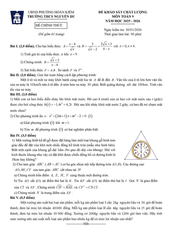 Đề khảo sát chất lượng Toán 9 năm 2025 – 2026 trường THCS Nguyễn Du – Hà Nội 12/02/2026