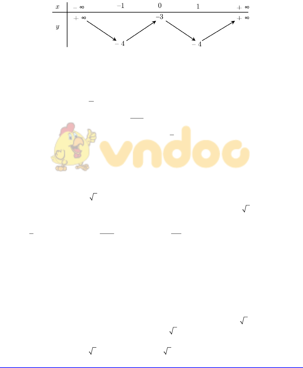 Trang 2/4 - Mã đề : 123 - Môn : Toán.Câu 13. Có bao nhiêu giá trị nguyên của tham số m để phương trình 341xxm có 3 nghiệm phân biệt? A. 17. B. 5. C. 7. D. 15. Câu 14. Diện tích xung quanh của hình nón có độ dài đường sinh 3l và bán kính đáy bằng 2r là A. 18. B. 24. C. 6. D. 12. Câu 15. Một khu rừng có trữ lượng gỗ là 535.10m. Biết tốc độ sinh trưởng của các cây ở khu rừng đó là 4% mỗi năm. Hỏi sau 6 năm, khu rừng đó sẽ có số mét khối gỗ gần với giá trị nào nhất sau đây? A. 3729990(m). B. 3608326(m). C. 3657966(m). D. 3632660(m). Câu 16. Tìm hàm số 42yaxbxc có bảng biến thiên như hình vẽ bên. A. 4223.yxx B. 4223.yxx C. 4223.yxx D. 4223.yxxCâu 17. Với a và b là các số thực dương tùy ý, a khác 1 thì 7logaab bằng A. 7log.ab B. 17log.ab C. 7log.ab D. 7log.ab Câu 18. Với a và b là các số thực dương, khác 1 và là số thực bất kỳ thì logab bằng A. log.ab B. 1log.ab C. log.ba D. log.ab Câu 19. Tiệm cận ngang của đồ thị hàm số 2xyx là đường thẳng A. 2.y B. 0.y C. 12y D. 1.y Câu 20. Tìm đạo hàm của hàm số e(1)yx trên khoảng (1;). A. e1e(1).yx B. e(1).yx C. e1e(1).yx D. e(e1)(1).yxCâu 21. Có tất cả bao nhiêu loại khối đa diện đều? A. 5. B. 4. C. 7. D. 6. Câu 22. Hàm số 49yx A. nghịch biến trên khoảng (3;). B. đồng biến trên khoảng 0;. C. đồng biến trên (;0). D. nghịch biến trên khoảng (;3). Câu 23. Tìm đạo hàm của hàm số 3logyx trên khoảng (0;). A. 1yx B. 1ln3yx C. ln3yx D. ln3.yx Câu 24. Hàm số 3237yxx đạt cực tiểu tại điểm A. 0.x B. 3.x C. 7.x D. 2.x Câu 25. Cho khối tứ diện ABCD và gọi M là trung điểm của đoạn thẳng .AB Khi đó, mặt phẳng ()P chứa đường cạnh CM, song song với BD chia khối tứ diện ABCD thành A. Một khối tứ diện và một khối chóp tứ giác. B. Một khối tứ diện và một khối lăng trụ. C. Hai khối chóp tứ giác. D. Hai khối tứ diện. Câu 26. Tiếp tuyến của đồ thị hàm số 3232y xx tại điểm có hoành độ bằng 2 là đường thẳng đi qua điểm A. (1;72).H B. (4;38).L C. (0;2).G D. (3;42).K Câu 27. Thể tích của khối hộp chữ nhật .ABCDABCD có ,AAa 2ABa và 5ACa bằng A. 315.a B. 36.a C. 325.a D. 32.a Câu 28. Khối lăng trụ tam giác đều có cạnh đáy bằng 1m và cạnh bên bằng 12m thì có thể tích là A. 312m. B. 33m. C. 333 m. D. 36m. Tải tài liệu miễn phí tại: https://vndoc.com/