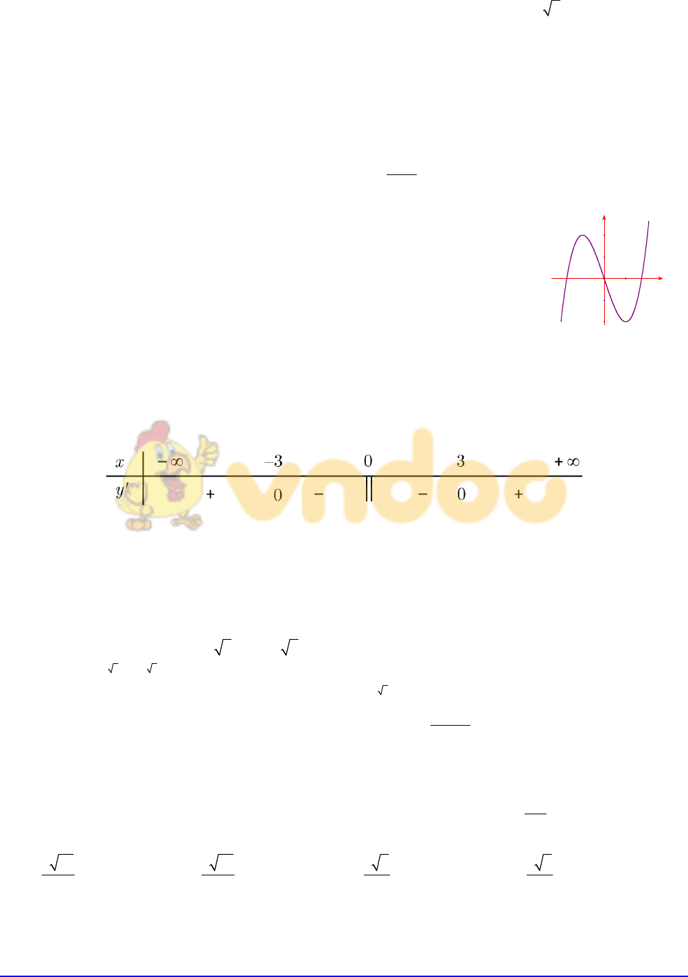 Trang 3/4 - Mã đề : 123 - Môn : Toán.Câu 29. Điểm cực đại của đồ thị hàm số 4264y xx là: A. 0;4.N B. 3;23.Q C. 0;0.M D. 3;13.P Câu 30. Số cạnh của khối mười hai mặt đều là: A. 20. B. 30. C. 12. D. 16. Câu 31. Giá trị lớn nhất của hàm số 331y xx trên đoạn 2;2 là: A. 1. B. 2. C. 3. D. 2. Câu 32. Số giao điểm của đồ thị hàm số 422yxx và đường thẳng 1y là A. 4. B. 0. C. 2. D. 3.Câu 33. Giao điểm hai đường tiệm cận của đồ thị hàm số 23xyx là điểm A. (1;3).F B. (3;1).E C. (2;3).H D. (3;2).G Câu 34. Đồ thị của hàm số nào dưới đây có dạng như đường cong trong hình bên? A. 33.yxx B. 33.yxx C. 33.yxx D. 33.yxx Câu 35. Thể tích của khối chóp có diện tích đáy 26mS và chiều cao 3mh bằng A. 312m. B. 34m. C. 318m. D. 36m. Câu 36. Nếu đặt 5xt thì phương trình 21155250xx trở thành A. 22512500.tt B. 252500.tt C. 2512500.tt D. 2252500.tt Câu 37. Cho hàm số có bảng xét dấu đạo hàm như sau (câu dẫn thế này liệu đã ổn chưa?) Hàm số đã cho: A. Nghịch biến trên khoảng (3;3). B. Đồng biến trên khoảng (;3). C. Đồng biến trên khoảng (3;0). D. Nghịch biến trên khoảng (0;). Câu 38. Với số thực a dương, khác 1 và các số thực , bất kì thì ta có A. .aaa B. .aaa C. ().aa D. ..aaa Câu 39. Tìm tọa độ giao điểm của đồ thị hàm số 4223yxx với trục hoành. A. (1;0) và (1;0). B. (3;0) và (3;0). C. (0;3). D. (3;60) và (3;60). Câu 40. Giá trị 5151: bằng A. 4. B. 2. C. 25. D. . Câu 41. Đặt 3log2a, khi đó 72log768 được biểu diễn dưới dạng 2manpa, với ,,mnp là các số nguyên. Giá trị 23mnp bằng A. 17. B. 36. C. 10. D. 73. Câu 42. Nếu khối lăng trụ đều .ABCABC có cạnh đáy bằng a và thể tích bằng 334a thì khoảng cách giữa hai đường thẳng AB và AC là A. 153a B. 155a C. 53a D. 35a Câu 43. Có bao nhiêu giá trị nguyên thuộc khoảng (30;30) của tham số m để mọi tiếp tuyến của đồ thị hàm số 32(23)1yxmxmx đều có hệ số góc dương? A. 59. B. 1. C. 58. D. 0. xyO1yfxTải tài liệu miễn phí tại: https://vndoc.com/ Đề thi học kì 1 Toán 12 năm 2020
