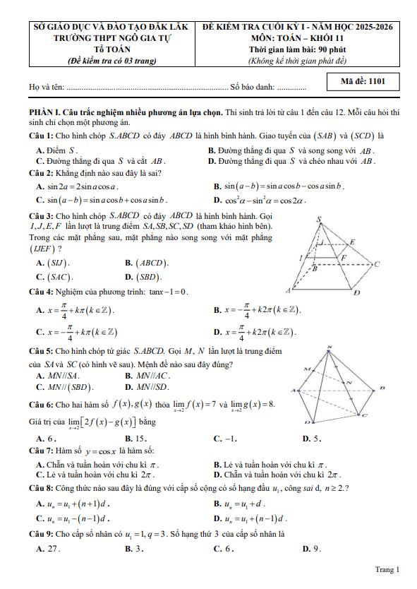 Đề kiểm tra Toán 12 tháng 01 năm 2026 trường Nguyễn Khuyến & Lê Thánh Tông – TP HCM