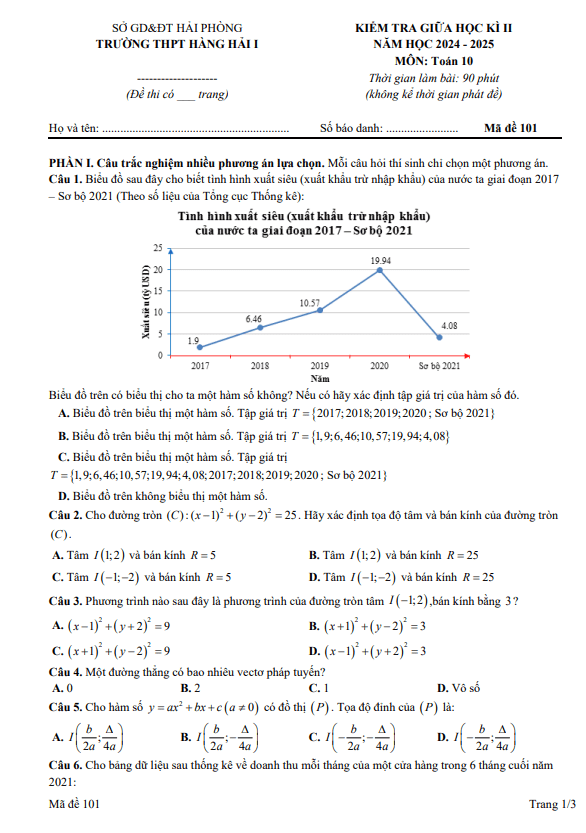 Đề giữa học kì 2 Toán 10 năm 2024 – 2025 trường THPT Hàng Hải 1 – Hải Phòng