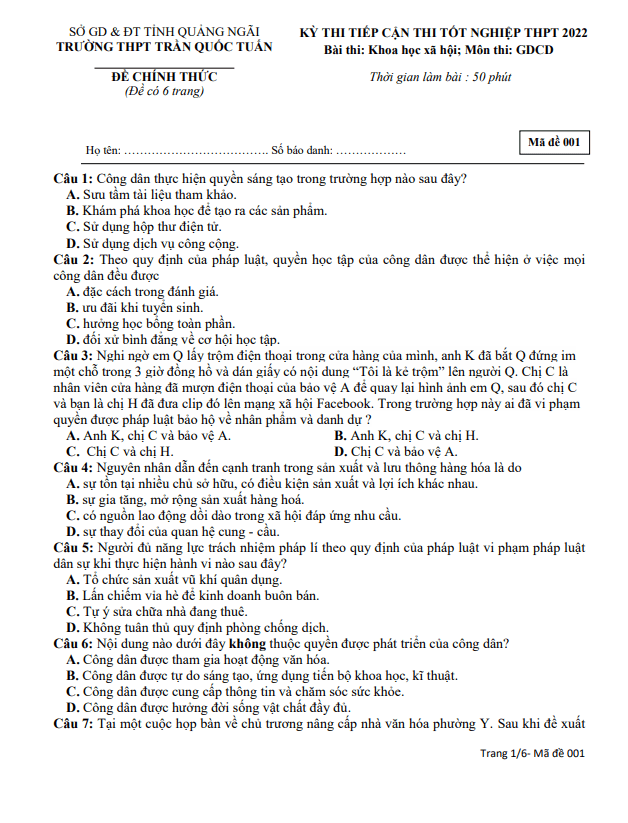 Tag đề Thi Gdcd Thpt Quốc Gia 2019 Mã đề 001 | .vn