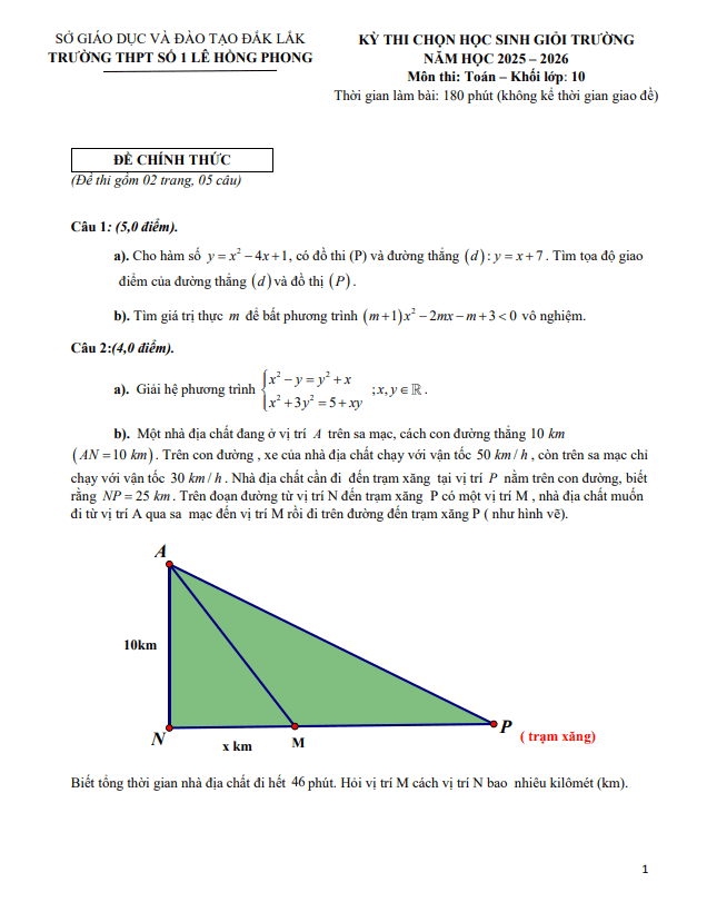 10/02/2026 Đề Thi Thử THPT Môn Toán