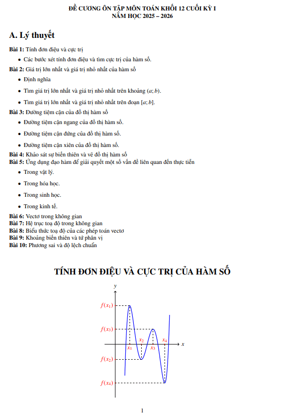 Đề cương cuối kỳ 1 Toán 12 năm 2025 – 2026 trường THPT Đức Trọng – Lâm Đồng 18/12/2025