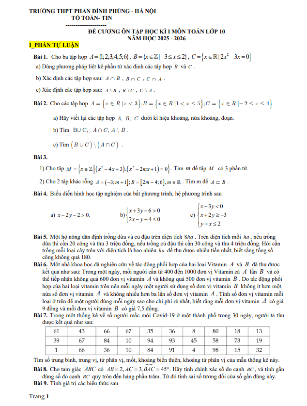 Đề cương học kì 1 Toán 10 năm 2025 – 2026 trường THPT Phan Đình Phùng – Hà Nội 18/12/2025