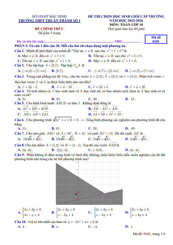 Đề thi chọn HSG Toán 10 năm 2025 – 2026 trường THPT Thuận Thành 1 – Bắc Ninh 18/03/2026