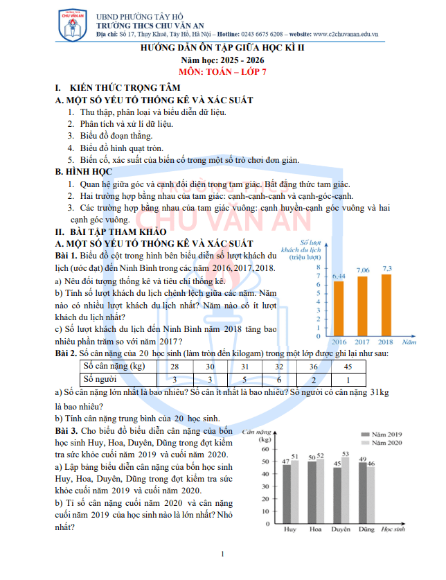 Ôn tập giữa học kì 2 Toán 7 năm 2025 – 2026 trường THCS Chu Văn An – Hà Nội 28/02/2026