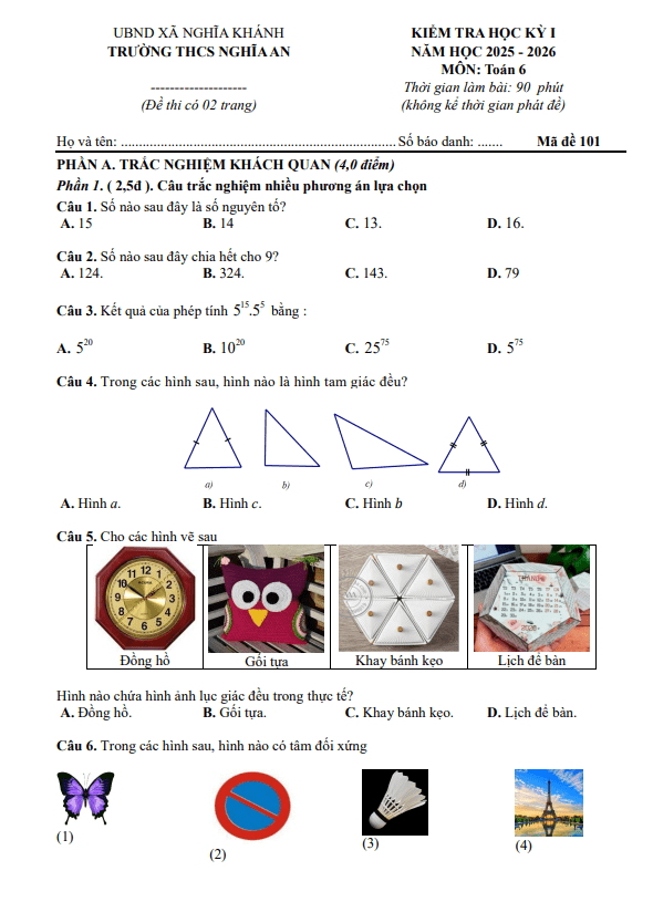 Đề cuối học kỳ 1 Toán 6 năm 2025 – 2026 trường THCS Võ Trường Toản – TP HCM 09/01/2026