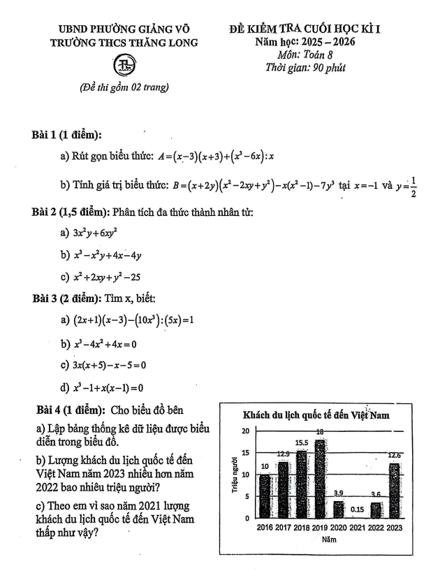 Đề cuối học kì 1 Toán 8 năm 2025 – 2026 trường THCS Thăng Long – Hà Nội 28/12/2025