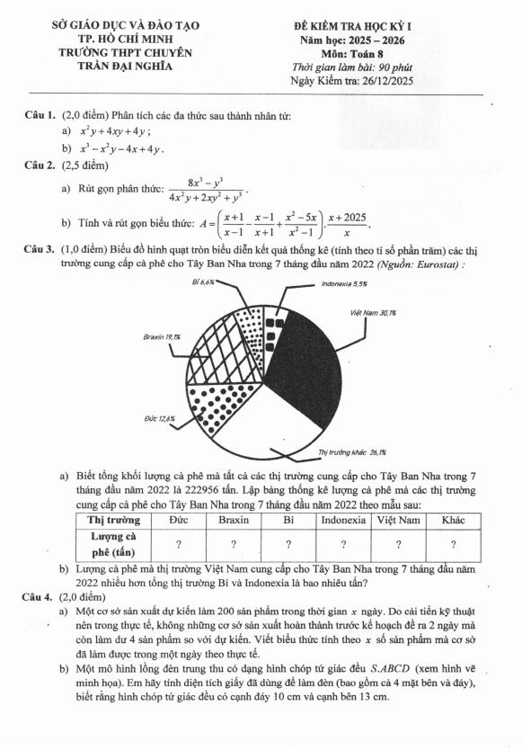 Đề học kỳ 1 Toán 8 năm 2025 – 2026 trường chuyên Trần Đại Nghĩa – TP HCM 28/12/2025