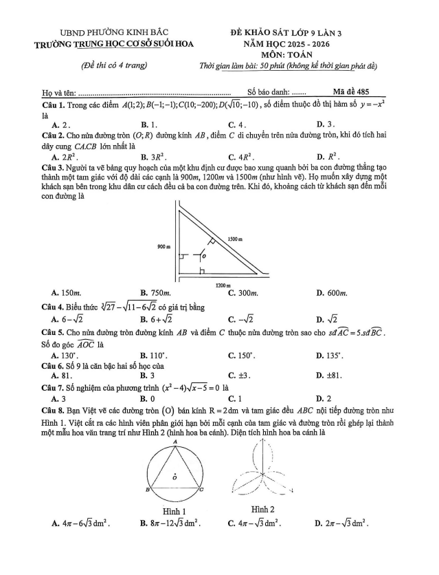 Đề khảo sát Toán 9 lần 4 năm 2025 – 2026 xã Vĩnh Phú – Phú Thọ 08/02/2026