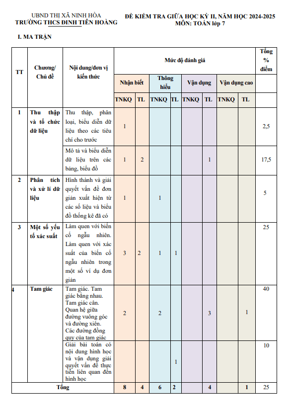 Đề Thi Giữa HK2 Toán 7 Đề giữa kỳ 2 Toán 7 năm 2024 – 2025 trường THCS Đinh Tiên Hoàng – Khánh Hòa