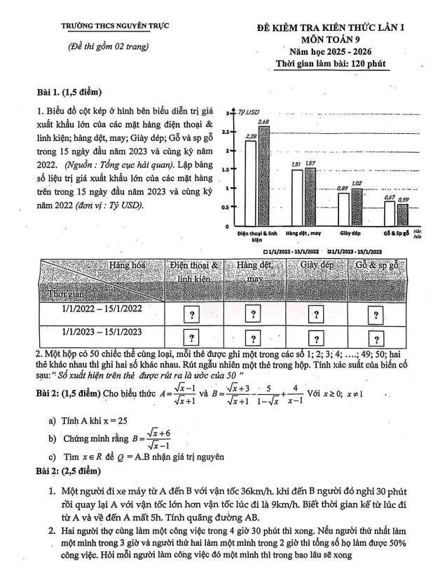 Đề kiểm tra lần 1 Toán 9 năm 2025 – 2026 trường THCS Nguyễn Trực – Hà Nội 06/02/2026