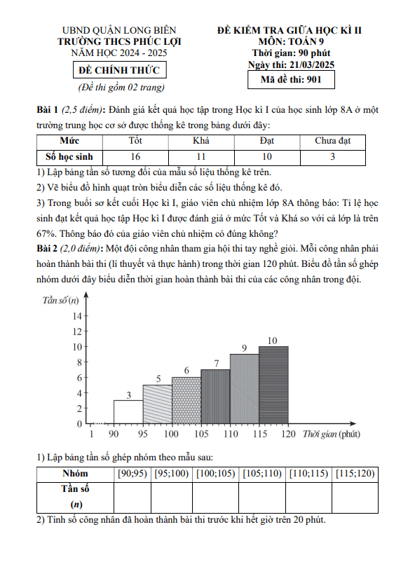 Đề giữa học kì 2 Toán 9 năm 2024 – 2025 trường THCS Phúc Lợi – Hà Nội
