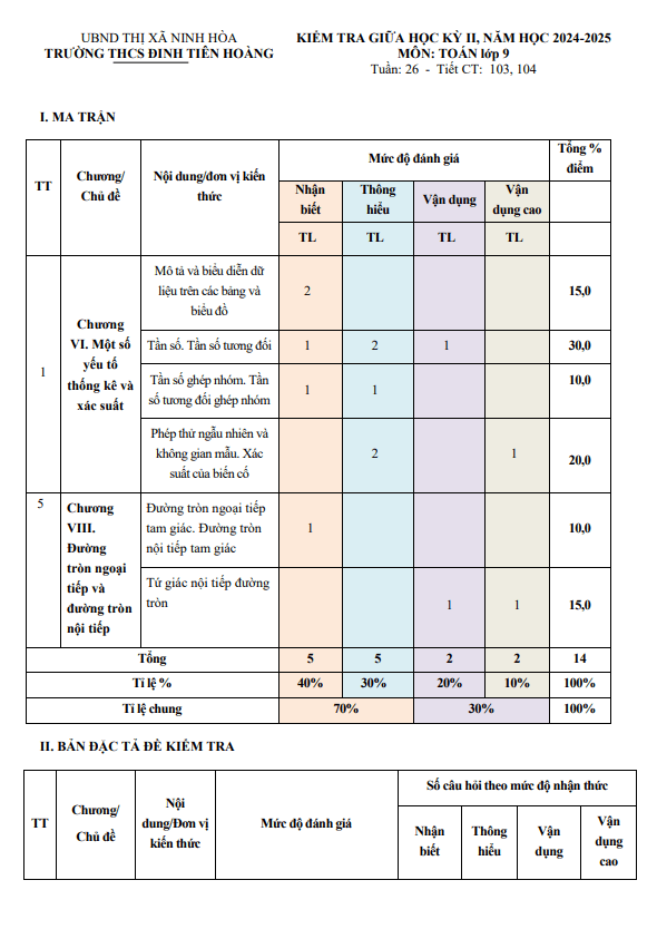 Đề giữa kỳ 2 Toán 9 năm 2024 – 2025 trường THCS Đinh Tiên Hoàng – Khánh Hòa