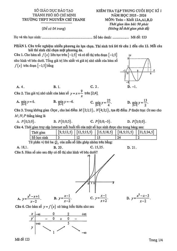 Đề Thi HK1 Toán 12 Đề cuối học kì 1 Toán 12 năm 2025 – 2026 trường THPT Nguyễn Chí Thanh – TP HCM