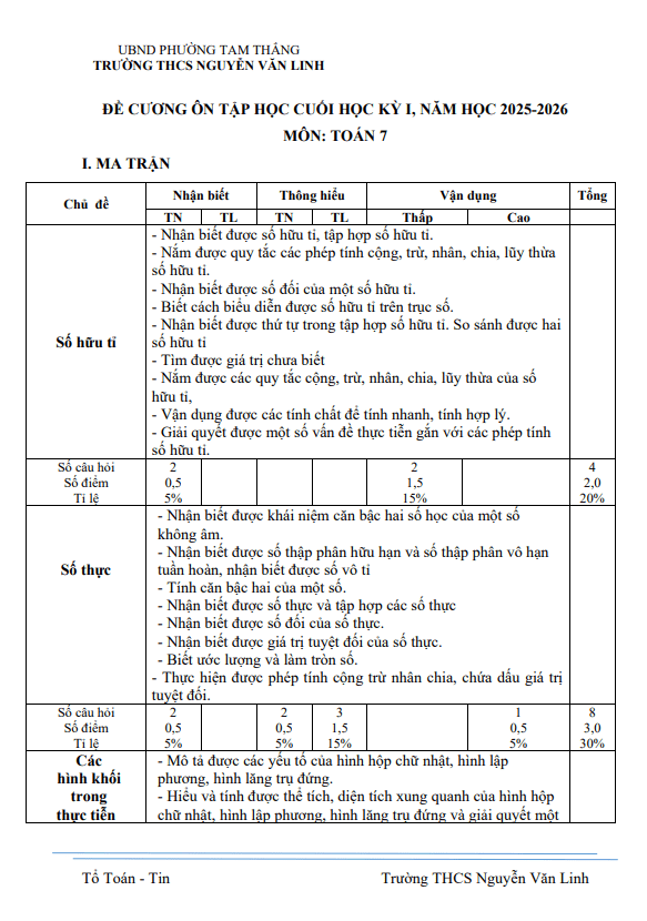 Đề cương cuối kì 1 Toán 7 năm 2025 – 2026 trường THCS Nguyễn Văn Linh – TP HCM 15/12/2025