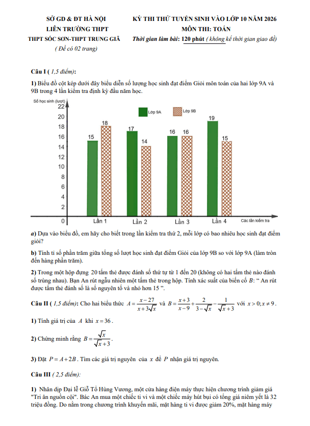 Đề thi thử vào lớp 10 môn Toán năm 2026 trường THPT Sóc Sơn & Trung Giã – Hà Nội 16/03/2026
