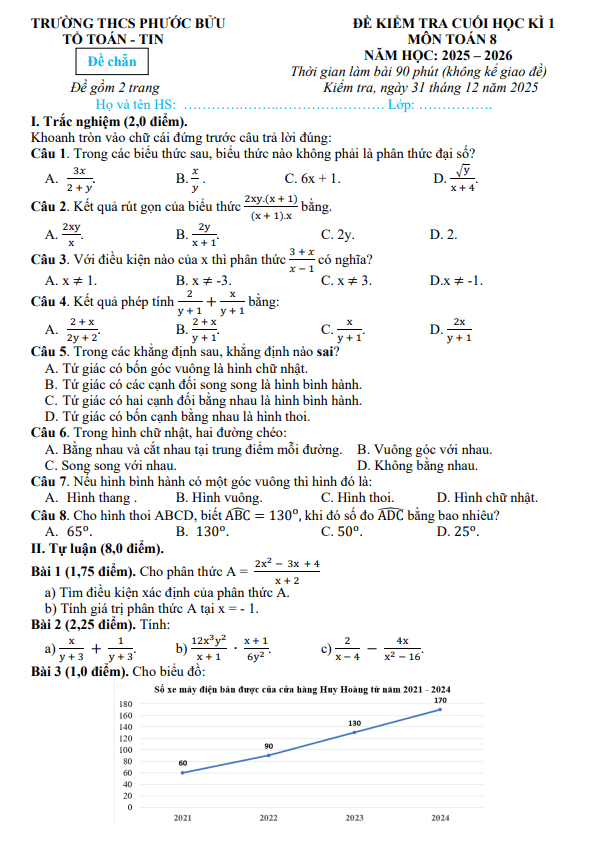 Đề Thi HK1 Toán 8 Đề học kì 1 Toán 8 năm 2025 – 2026 trường THCS Phước Bửu – TP HCM
