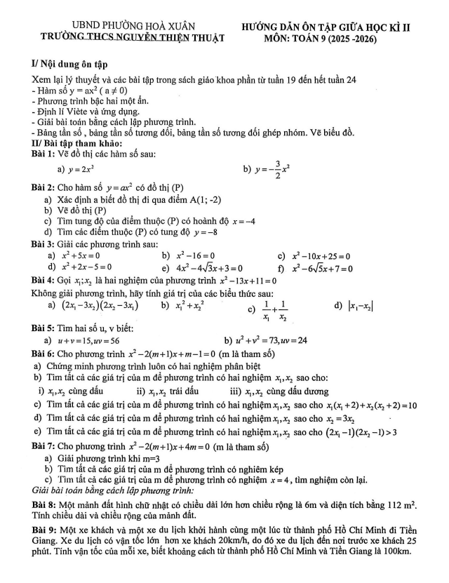 Ôn tập giữa kì 2 Toán 9 năm 2025 – 2026 trường THCS Nguyễn Thiện Thuật – Đà Nẵng 06/03/2026