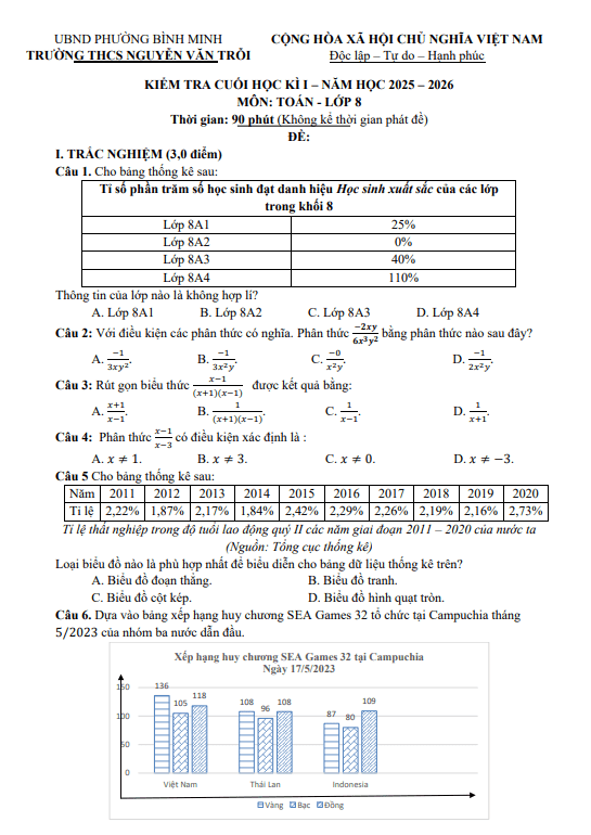 Đề cuối kì 1 Toán 8 năm 2025 – 2026 trường THCS Nguyễn Văn Trỗi – Tây Ninh 26/12/2025