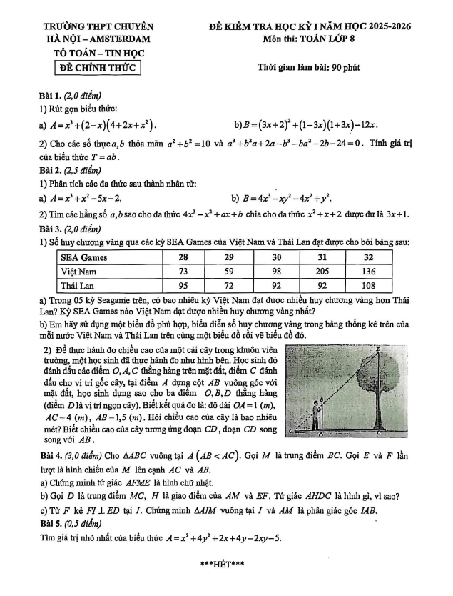 Đề học kỳ 1 Toán 8 năm 2025 – 2026 trường THPT chuyên Hà Nội – Amsterdam 19/12/2025