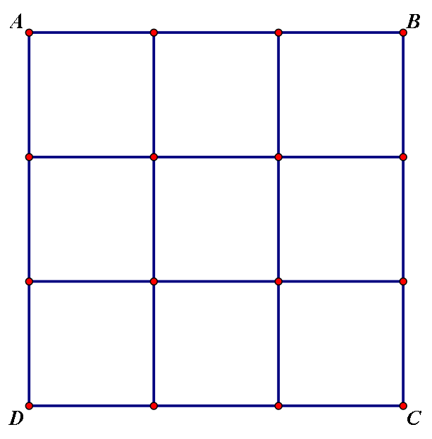 | Hình vuông ABCD được tạo thành từ 9 hình vuông nhỏ như hình vẽ bên. Biết cạnh AB = 9cm. Diện tích của một hình vuông nhỏ bằng: (A) 1 cm2; (B) 27 cm2 (C) 9 cm2; (D) 3 cm2.