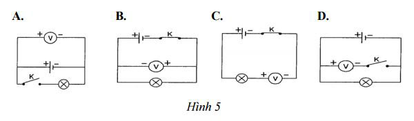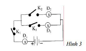 Câu 11. (2 điểm) Hai bóng đèn điện Đ1, Đ2 mắc song song với nhau và mắc với nguồn điện có 2 pin bằng dây dẫn thông qua công tắc K thành mạch kín. Vôn kế V đo hiệu điện thế hai đầu bóng đèn Đ2.