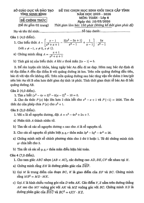 Đề chọn học sinh giỏi tỉnh Toán 9 năm 2025 – 2026 sở GD&ĐT Ninh Bình 10/03/2026
