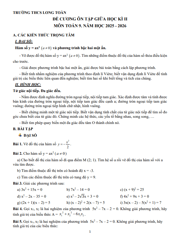 Đề giữa kì 2 Toán 9 năm 2025 – 2026 trường THCS Chu Văn An – Đà Nẵng 09/03/2026
