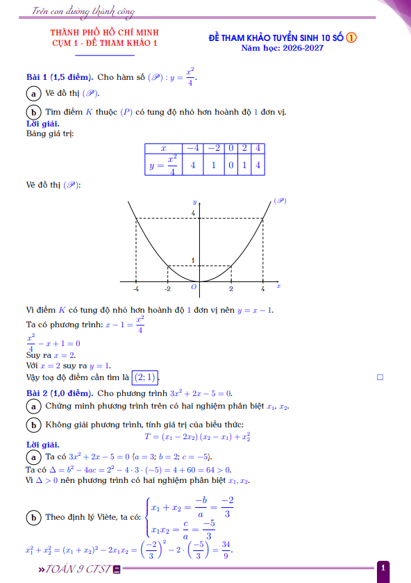 Đáp án bộ đề tham khảo tuyển sinh lớp 10 môn Toán năm 2026 – 2027 sở GD&ĐT TP HCM 26/02/2026