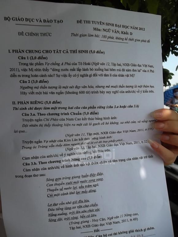 Ngay sau khi kết thúc môn thi đầu tiên của khối D 2012, đề thi môn Ngữ văn khối D đã được chúng tôi cập nhật.