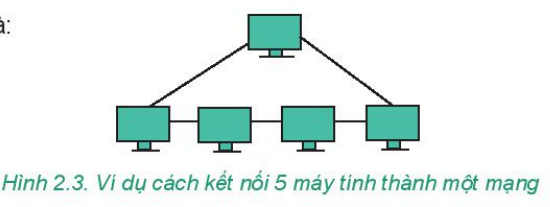 Câu 8 (2.0 điểm): Phòng thư viện của trường có 5 máy tính cần kết nối thành một mạng. Có thể có nhiều cách kết nối, ví dụ như Hình 2.3. Em hãy vẽ hai cách khác để kết nối chúng thành một mạng.