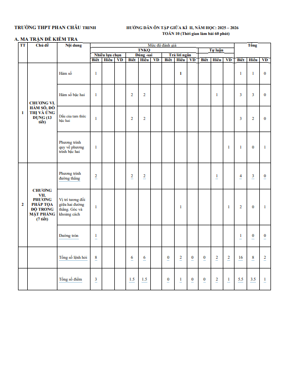 Ôn tập giữa kì 2 Toán 10 năm 2025 – 2026 trường THPT Phan Châu Trinh – Đà Nẵng 08/03/2026