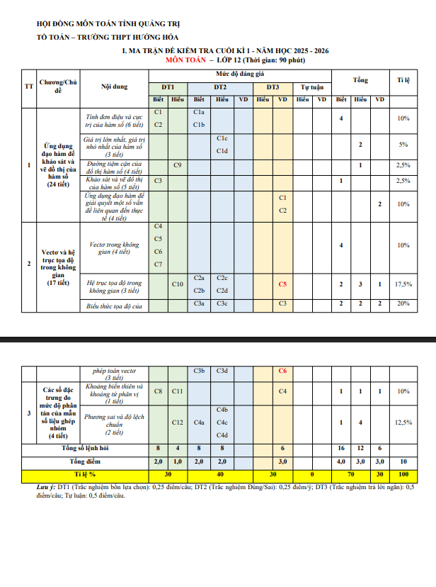 Đề cuối kỳ 1 Toán 12 năm 2025 – 2026 trường THPT Lương Thế Vinh – TP HCM 17/12/2025