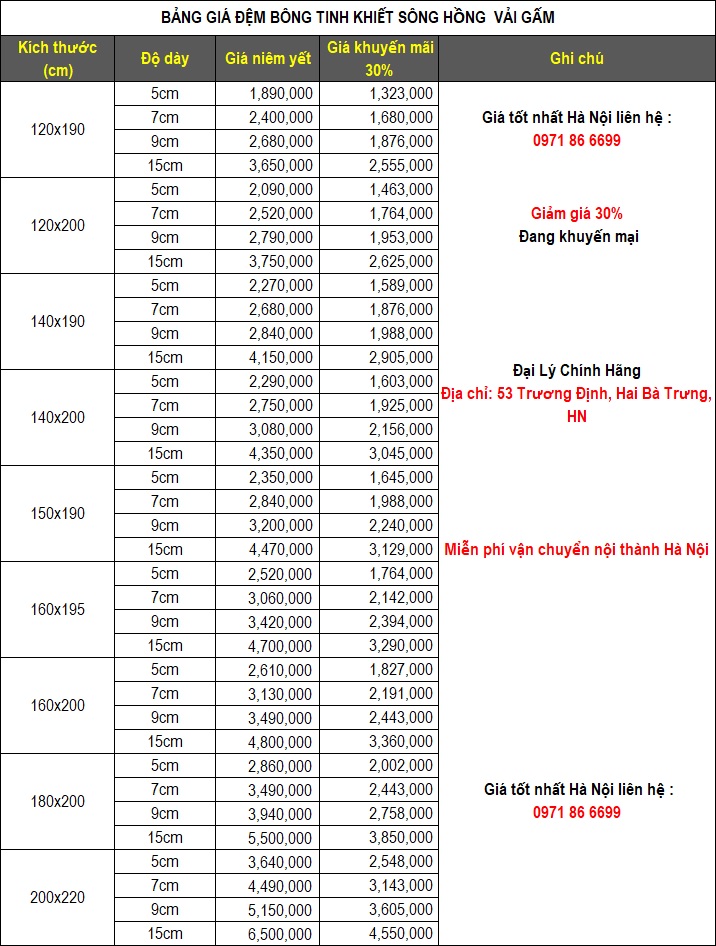 Bảng Giá đệm Bông ép Sông Hồng Siêu Khuyến Mại 2020 Tới 30%+ ...