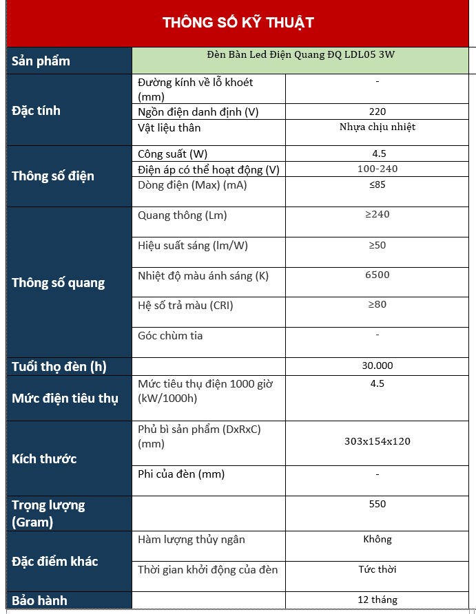Đèn Bàn Led Điện Quang ĐQ LDL05 3W5.0(10)548.900Sản phẩm đã hết hàngBạn có thể xem các sản phẩm tương tự.Xem Sản Phẩm Tương TựMô tả sản phẩm