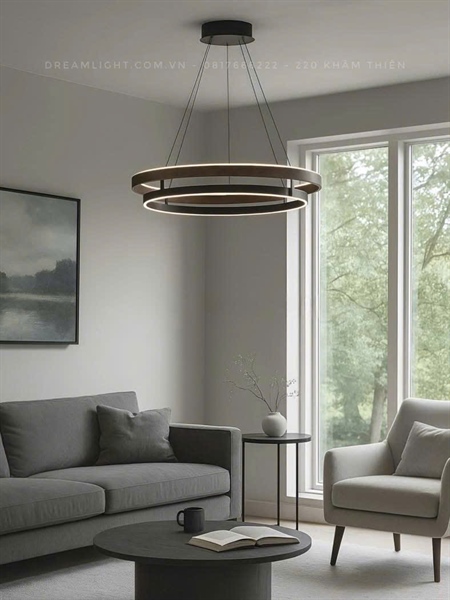 Đèn chùm vòng led dưới mỏng vỏ cà phê