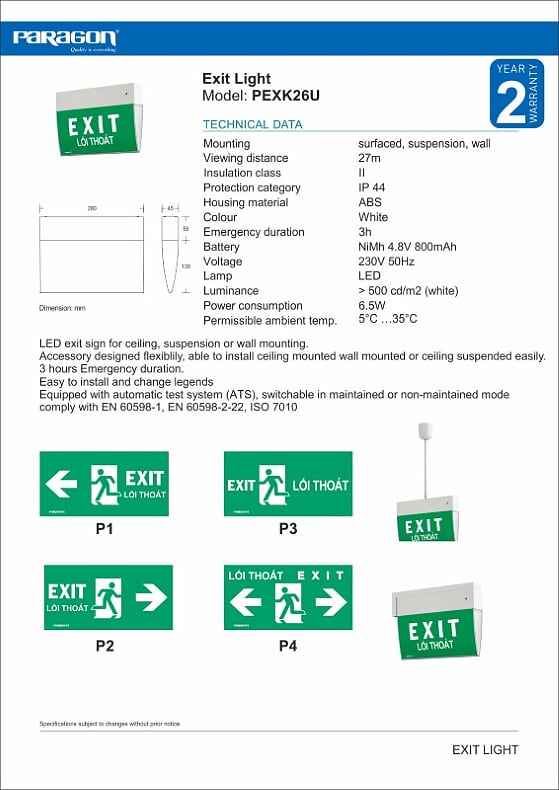 Đèn Exit Thoát Hiểm PEXL26U - Paragon
