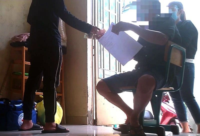 Sau đó, ông đưa mảnh giấy, yêu cầu anh N ghi họ tên, năm sinh, địa chỉ nhà, số điện thoại… “Để người ta in giấy cho mình đi luôn” - ông nói.