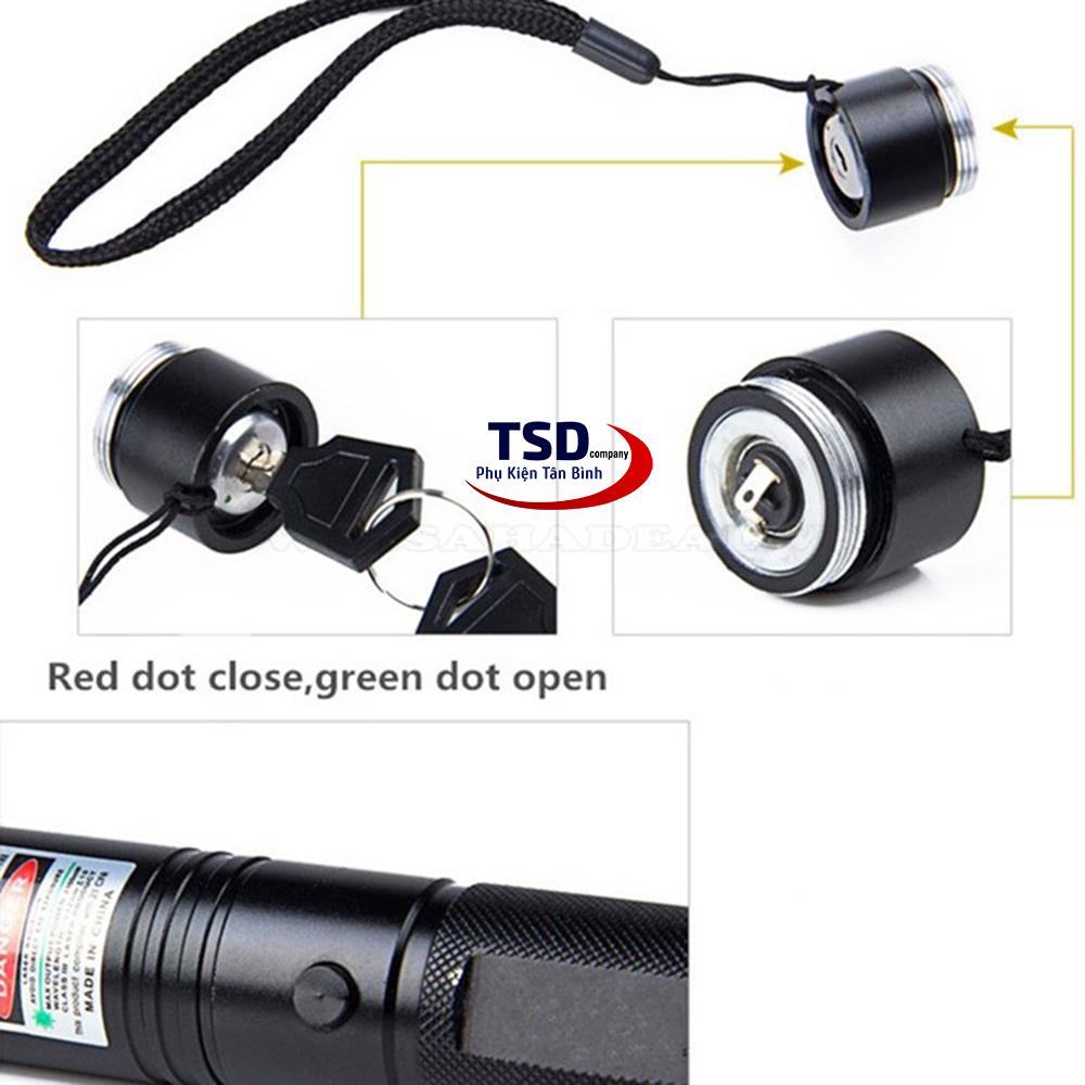 ĐẶC ĐIỂM NỔI BẬT: - Đèn pin laser 303 có công suất 5000mw phát ra tia xanh với bước sóng 532nm có thể xa hàng Km, được ứng dụng rộng rãi trong xây dựng, du lịch, phát tín hiệu khi bị lạc, dùng trong giảng dạy... - Mỗi chiếc đèn Laser 303 được trang bị khóa, do vậy rất an toàn cho người sử dụng. - Có khả năng tự vệ và khống chế kẻ xấu trong trường hợp khẩn cấp. - Những công trình cao mấy trăm mét cần những chiếc đèn laser xanh / đỏ có thể chiếu tới và nhìn rõ => rất phù hợp với các kĩ sư công trình.