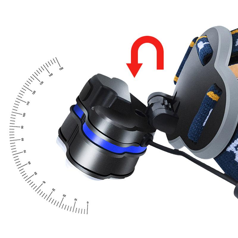 Đèn Pin Đội đầu 8 Bóng Xoay 360 Độ Siêu Sáng, 6 Chế độ Sáng