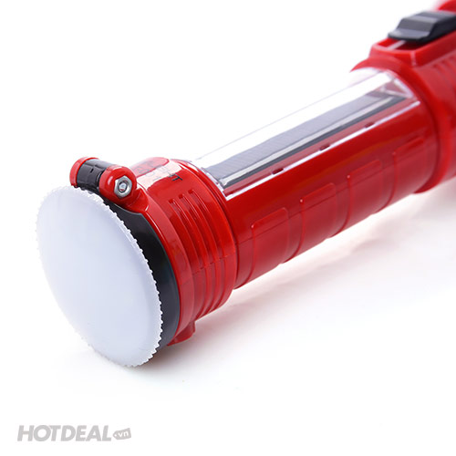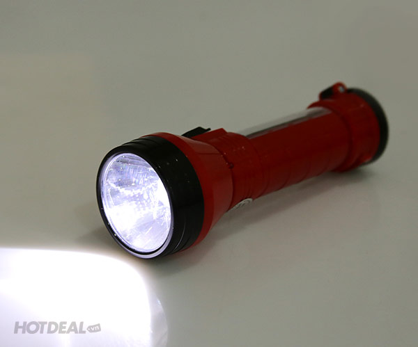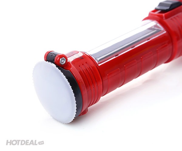 - Sản phẩm được trang bị 1 đèn LED 2W ở đầu cùng 7 đèn LED ở thân đèn, giúp mang đến ánh sáng rộng và mạnh mẽ. Ngoài chức năng sạc pin thông thường, bạn còn có thể sạc đèn bằng năng lượng mặt trời rất tiện lợi.