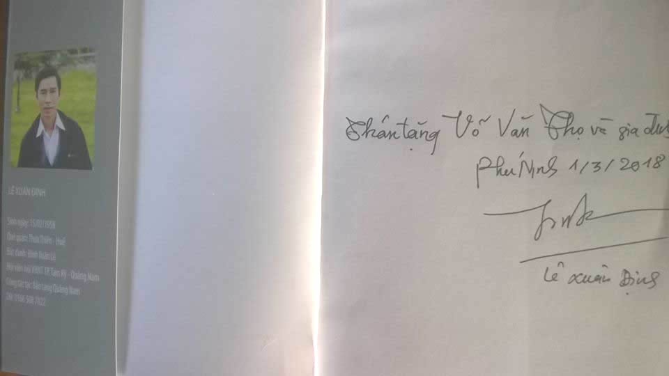 Đọc 60 bài thơ trong tập thơ "Cõi phiêu bồng" của Lê Xuân Định (Đinh Xuân Lệ) do Nhà Xuất bản Hội Nhà Văn ấn hành, tôi cảm thấy se thắt, rung cảm trước tấm lòng ấm áp của người con đất Huế, hiện công tác tại Bảo tàng Quảng Nam (Hội viên Hội VHNT TP Tam Kỳ). Mở đầu tập thơ tác giả dành tình cảm thiêng liêng cao quý nhất cho người mẹ: "Mẹ sinh ta khi đồng không mông quạnh/ Gió bấc về xô tấm liếp phân trâu..." và cái thời anh sinh ra trong những năm tháng còn chiến tranh, loạn lạc "Thời tao loạn theo cha bỏ xứ/ Đường mưu sinh nhiều bước thăng trầm". Cuộc đời anh là những chuyến đi dài ngày, qua nhiều miền quê, qua nhiều dòng sông chảy nặng phù hoa, gắn bó với biết bao nhiêu kỷ niệm với 3 dòng sông thơ mộng là sông Hương (nơi anh sinh ra), sông Hàn (nơi anh sinh sống) và sông Trường Giang (nơi anh công tác); 3 dòng trôi êm ái đã lắng đọng, hội tụ trong anh những cảm xúc thăng hoa, để rồi nó như chất xúc tác thành nên những trang thơ mượt mà, dung dị và lắng đọng... Và có lẽ 60 năm phong ba trong cuộc đời anh tuy chưa thỏa lòng thực hiện được giấc mơ "lớn lao" trong đời, song cái anh làm được là "Sáu mươi năm về neo bến cũ", con người là vậy, tuổi trẻ thì bôn ba vạn dặm đi khắp muôn phương vì kế sinh nhai và lo sự nghiệp, nhưng khi có tuổi thì muốn quay về quê hương nguồn cội, nơi cha mẹ sinh ta ra để tạ ơn đấng sinh thành: "Bỏ bữa bên chồng vì cơn ốm nghén/ Đau đớn khôn cùng giây phút khai hoa/ Bầu ngực thanh xuân như từng ước nguyện/ Cho con hồng hào mũm mĩm thịt da". Tác giả viết về Ngoại của mình khi đi vào "Cõi phiêu bồng": "Từ phố biển con về đưa tiễn ngoại/ Ngự Bình ơi xin vỗ về giấc ngủ/ Cho người vừa vĩnh biệt cõi trần gian..." (Tiễn Biệt);